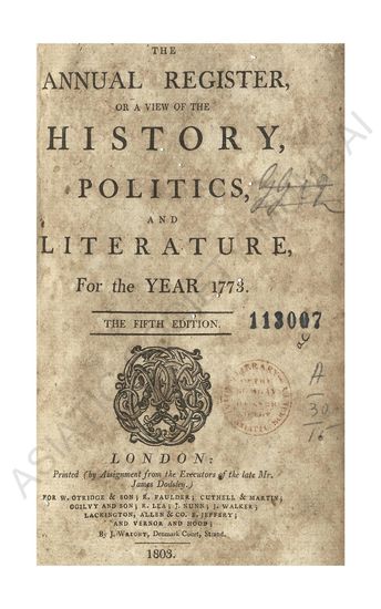Annual register : or a view of the history, politics, and literature, for the year 1775.