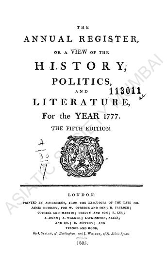 Annual register : or a view of the history, politics, and literature, for the year 1777.