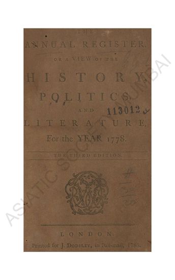 Annual register : or a view of the history, politics, and literature, for the year 1778.