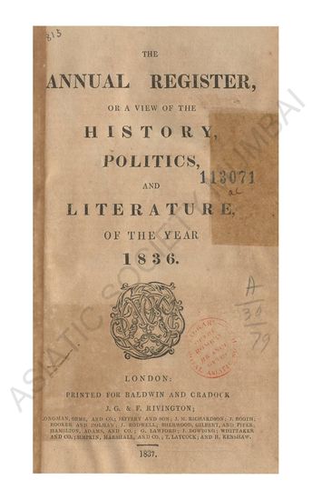 Annual register : or a view of the history, politics, and literature, for the year 1837.