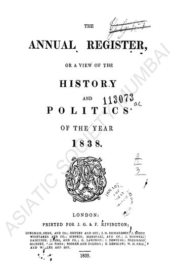 Annual register : or a view of the history, politics, and literature, for the year 1838.