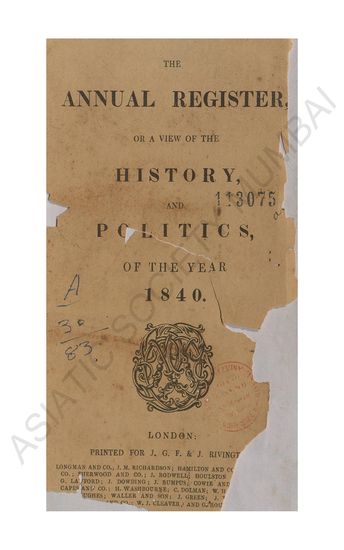 Annual register : or a view of the history, politics, and literature, for the year 1840.
