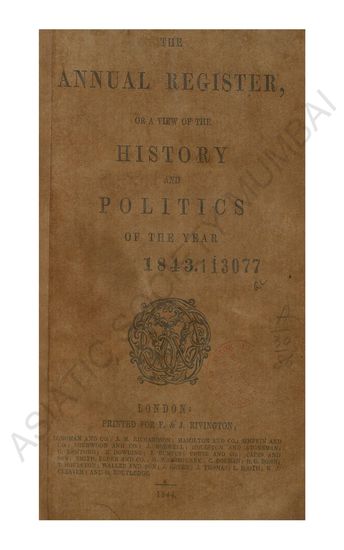 Annual register : or a view of the history, politics, and literature, for the year 1843.