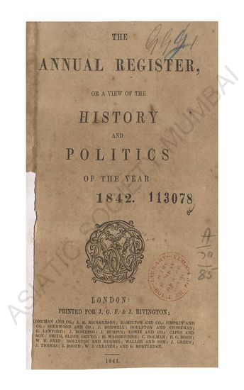 Annual register : or a view of the history, politics, and literature, for the year 1842.