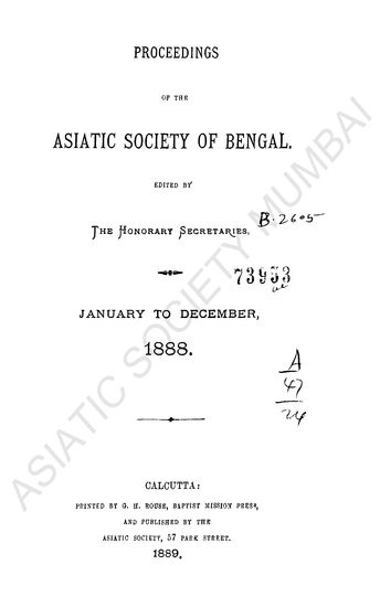 Proceedings of the Asiatic Society of Bengal, January to December, 1888.