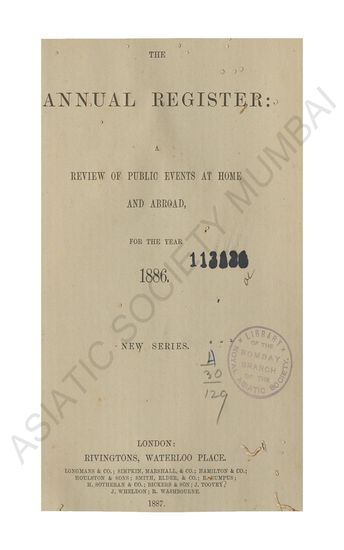 Annual register : a review of public events at home and abroad, for the year 1886.