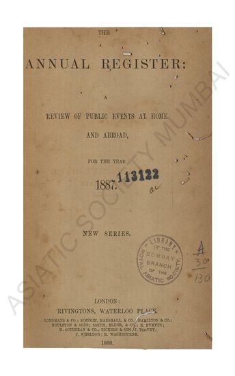 Annual register : a review of public events at home and abroad, for the year 1887.