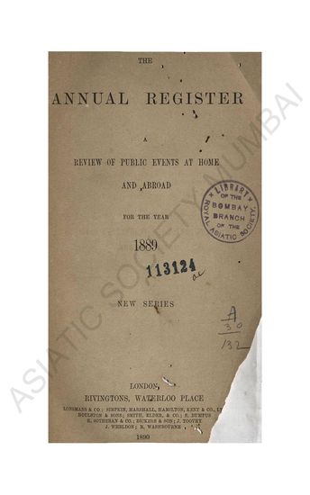 Annual register : a review of public events at home and abroad, for the year 1889.