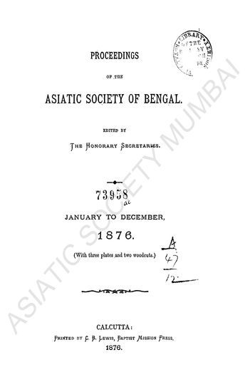 Proceedings of the Asiatic Society of Bengal, January to December, 1876.