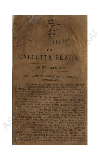 Calcutta Review., Vol. LXXXVIII, Jan. 1889.