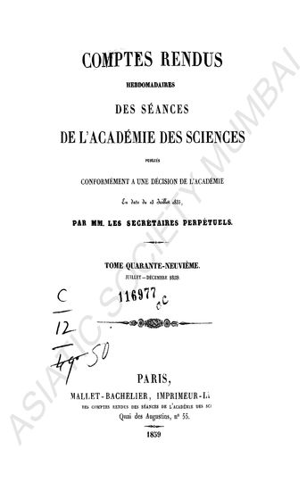 Comptes rendus hebdomadaires des séances de l'Académie des sciences.