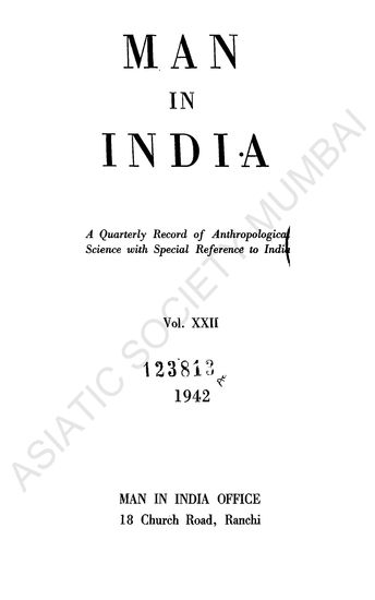 Man in India A Quarterly record of anthropological science with special reference to India. Vol XXII. 1942.