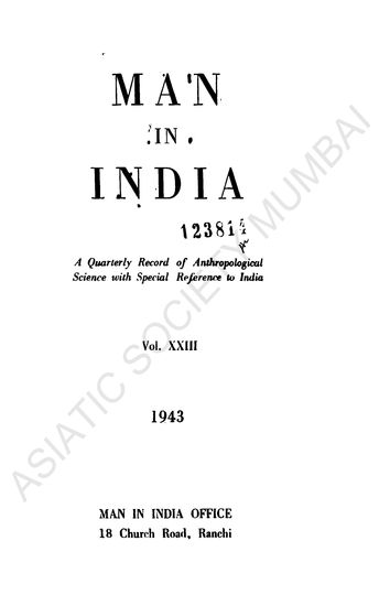 Man in India A Quarterly record of anthropological science with special reference to India. Vol XXIII. 1943.