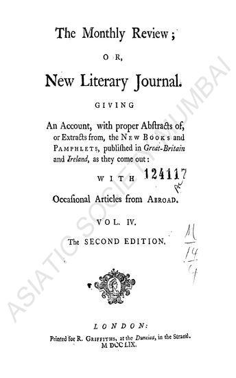 Monthly Review; or New Literary Journal Vol. IV. The Second Edition.