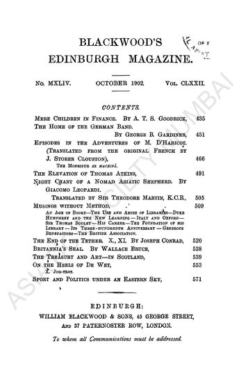 Blackwood's Edinburgh Magazine. Vol CLXXII. July, 1902.