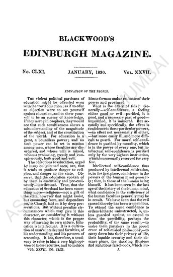 Blackwood's Edinburgh Magazine. Vol XXVII. January, 1830.