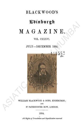 Blackwood's Edinburgh Magazine. Vol CXXXVI. July- December, 1884.