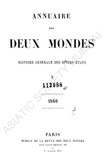 Annuaire des deux mondes : histoire générale des divers états, X, 1860.