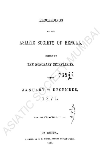 Proceedings of the Asiatic Society of Bengal, January to December, 1871.