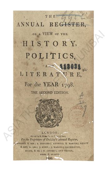 Annual register : or a view of the history, politics, and literature, for the year 1798.