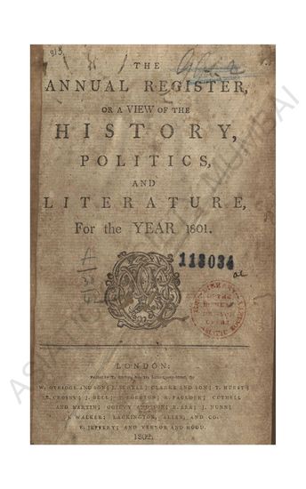 Annual register : or a view of the history, politics, and literature, for the year 1801.