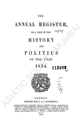 Annual register : or a view of the history, politics, and literature, for the year 1854.