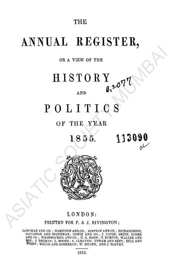 Annual register : or a view of the history, politics, and literature, for the year 1855.