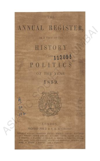 Annual register : or a view of the history, politics, and literature, for the year 1859.