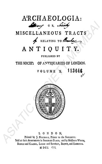 Archaeologia, or, Miscellaneous tracts relating to antiquity, Vol.-X.