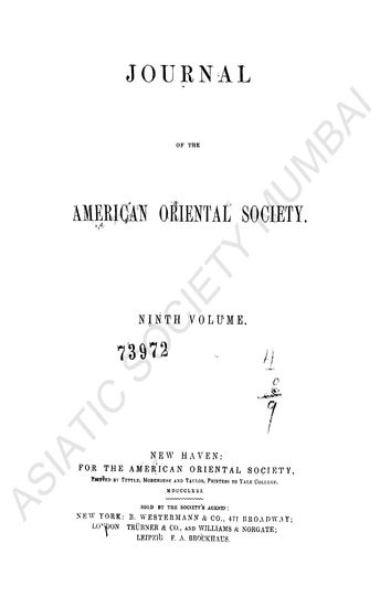 Journal of the American Oriental Society, Ninth Volume.