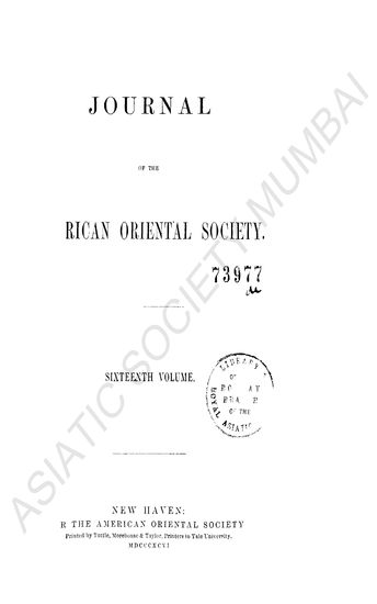 Journal of the American Oriental Society, Sixteenth Volume.