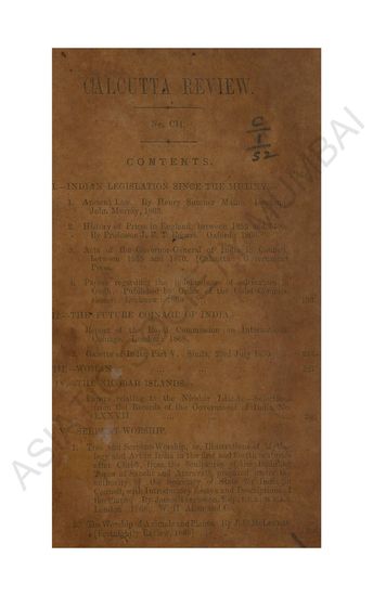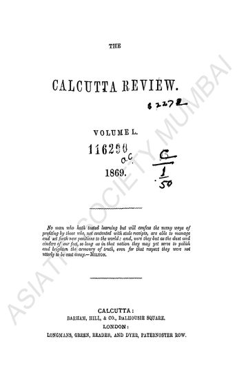 Index to the first fifty volumes of the Calcutta Review, in two parts.