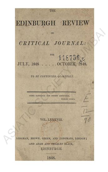 Edinburgh Review, or Critical Journal: for January. 1848... April. 1848. to be Continued Quarterly. Vol, LXXXVII.