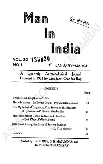 Man in India A Quarterly record of anthropological science with special reference to India. Vol XXVII. March 1947.