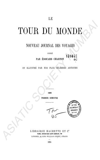 Le Tour Du Monde Journal Des Voyages Et Des Voyageurs. 1894. First Semester.