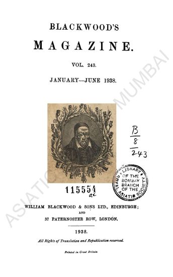 Blackwood's Magazine. Vol CCXLIII. January- June, 1938.