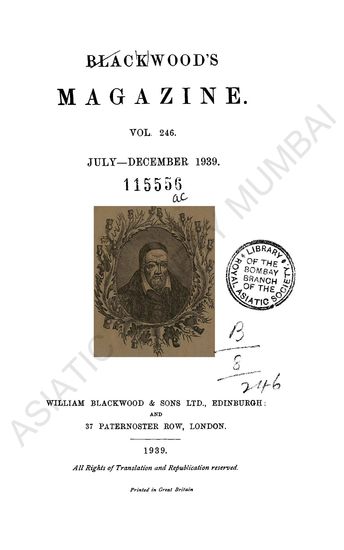 Blackwood's Magazine. Vol CCXLVI. July- December, 1939.