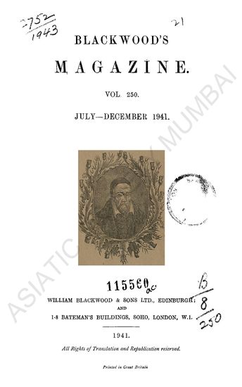 Blackwood's Magazine. Vol CCL. July- December, 1941.