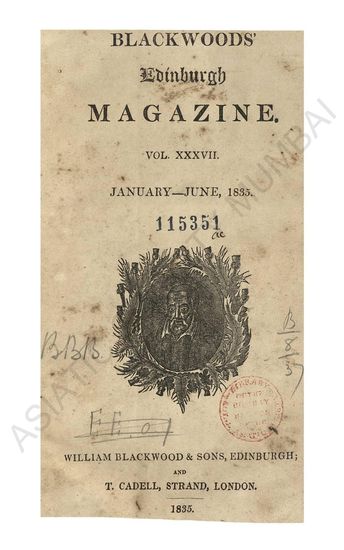 Blackwood's Edinburgh Magazine. Vol XXXVII. January- June, 1835.