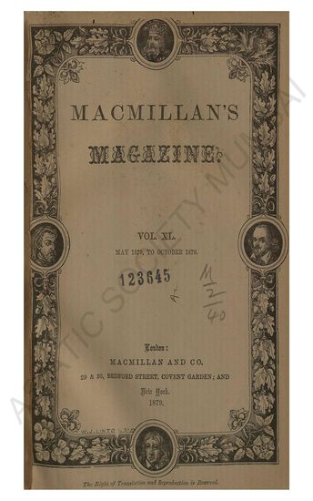 Macmillans Magazine. Vol. XL. May, 1879 - October, 1879.