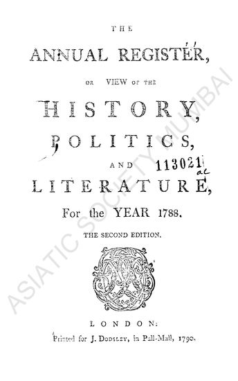 Annual register : or a view of the history, politics, and literature, for the year 1788.