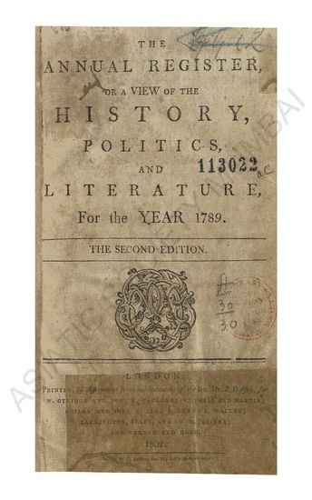 Annual register : or a view of the history, politics, and literature, for the year 1789.