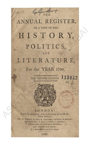 Annual register : or a view of the history, politics, and literature, for the year 1790.