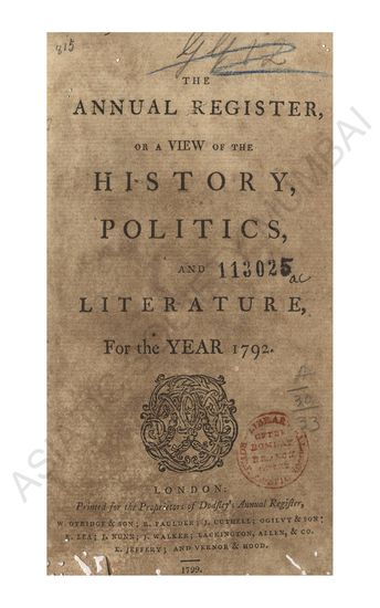 Annual register : or a view of the history, politics, and literature, for the year 1792.