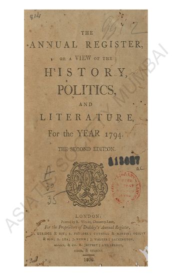 Annual register : or a view of the history, politics, and literature, for the year 1794.