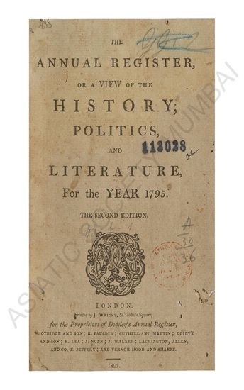 Annual register : or a view of the history, politics, and literature, for the year 1795.