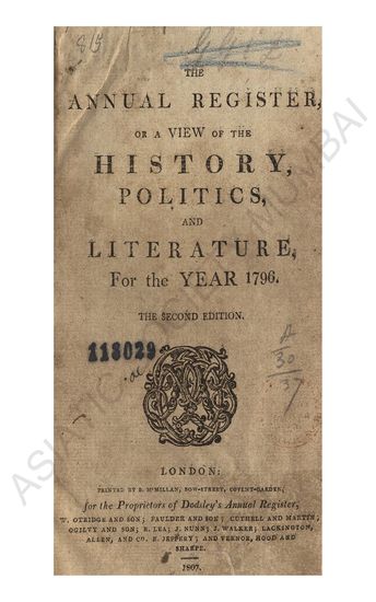 Annual register : or a view of the history, politics, and literature, for the year 1796.