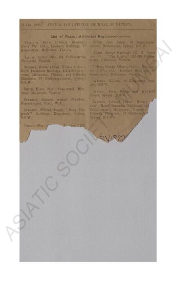 Australian Official Jouurnal of Patents. Vol XXXI. Name ...