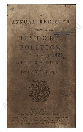 Annual register : or a view of the history, politics, and literature, for the year 1791.