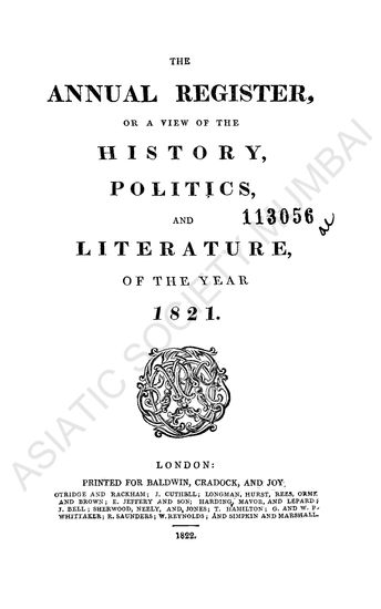 Annual register : or a view of the history, politics, and literature, for the year 1821.